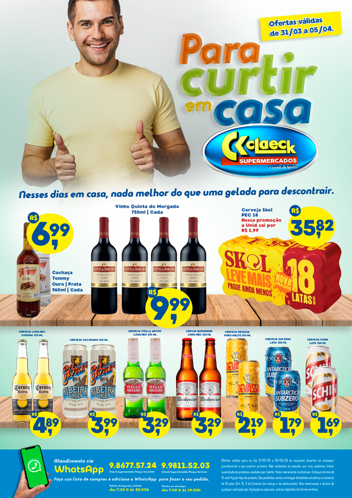 Para esses dias de quarentena, o Claeck Supermercados preparou preços especiais para você não deixar de tomar aquela gelada.