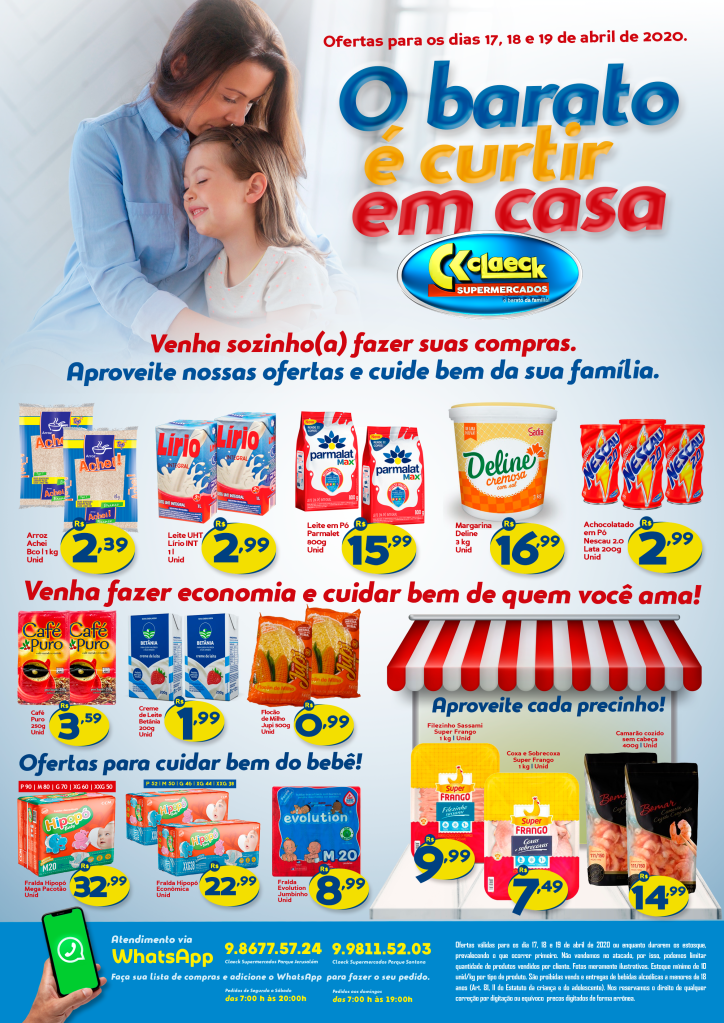 Confira os precinhos do Claeck Supermercados para esse fim de semana. Ofertas válidas para sexta, sábado e domingo. Dias 17, 18 e 19 de abril de 2020.