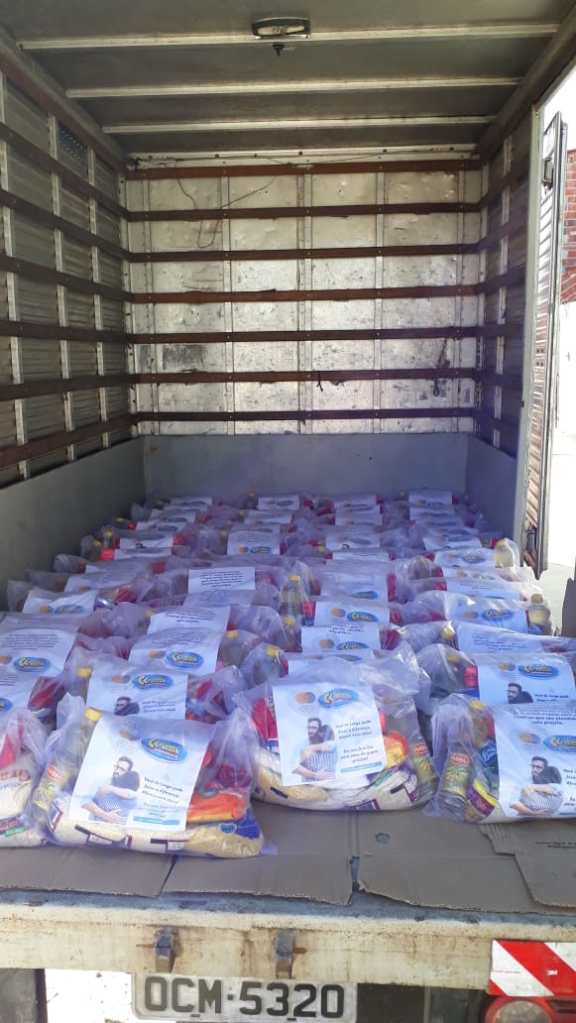 Foram doadas 50 cestas para o projeto, contemplando assim 100 cestas básicas doadas pelo Claeck Supermercados para entidades carentes, tanto do Parque Jerusalém, como do Parque Santana.