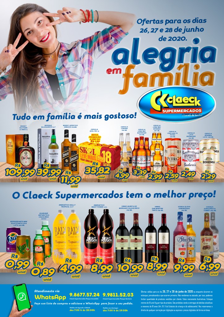 Ofertas para o fim de semana por Claeck SupermercadosPostado em 26 de junho de 202028 de junho de 2020 Venha correndo aproveitar as ofertas do Claeck Supermercados para você curtir em família!!! Compartilhe isso: Compartilhar no X(abre em nova janela) 18+ Compartilhar no Facebook(abre em nova janela) Facebook Curtir Carregando... Relacionado