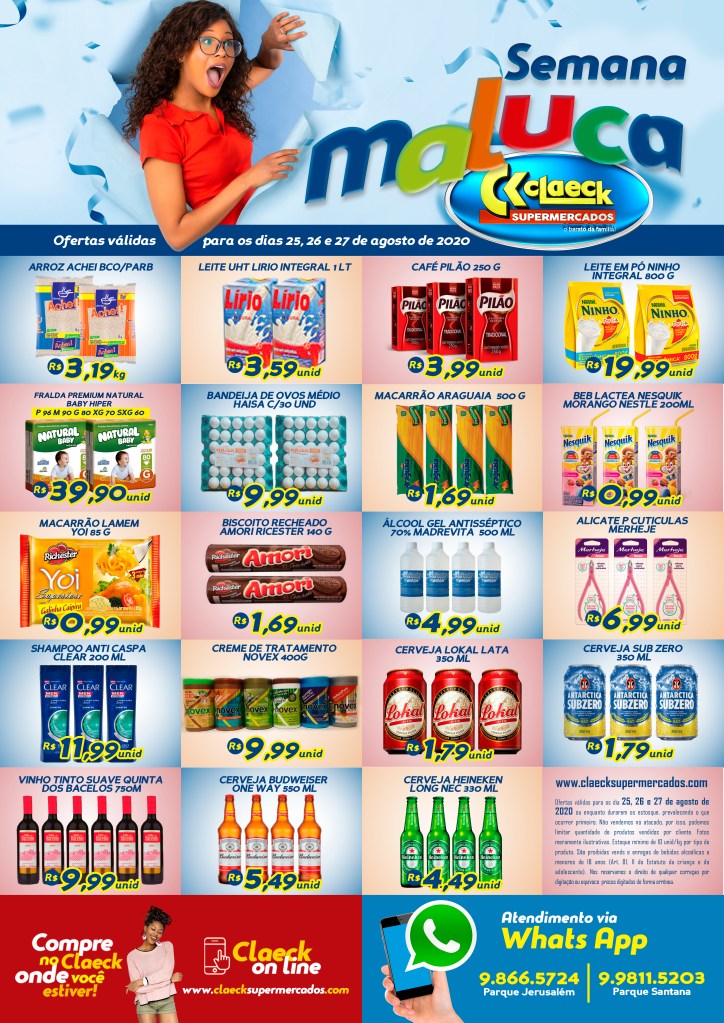Semana maluca! por Claeck SupermercadosPostado em 24 de agosto de 202028 de agosto de 2020 Não fique de fora!!!! Não perca tempo!!! Venha aproveitar o precinho do Claeck Supermercados. Compre pelo Claeck On Line: Compartilhe isso: Compartilhar no X(abre em nova janela) 18+ Compartilhar no Facebook(abre em nova janela) Facebook Curtir Carregando... Relacionado