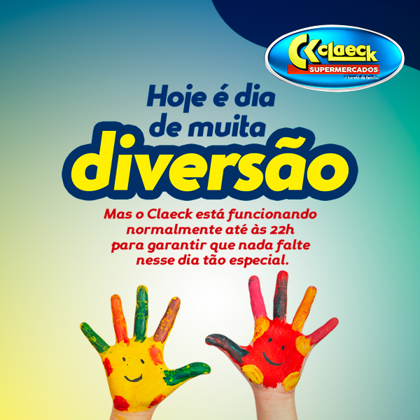 Para que não falte nada de bom para você e sua família, comemorarem juntos esse dia das crianças inesquecível, o Claeck Supermercados está funcionando normalmente até às 22h.