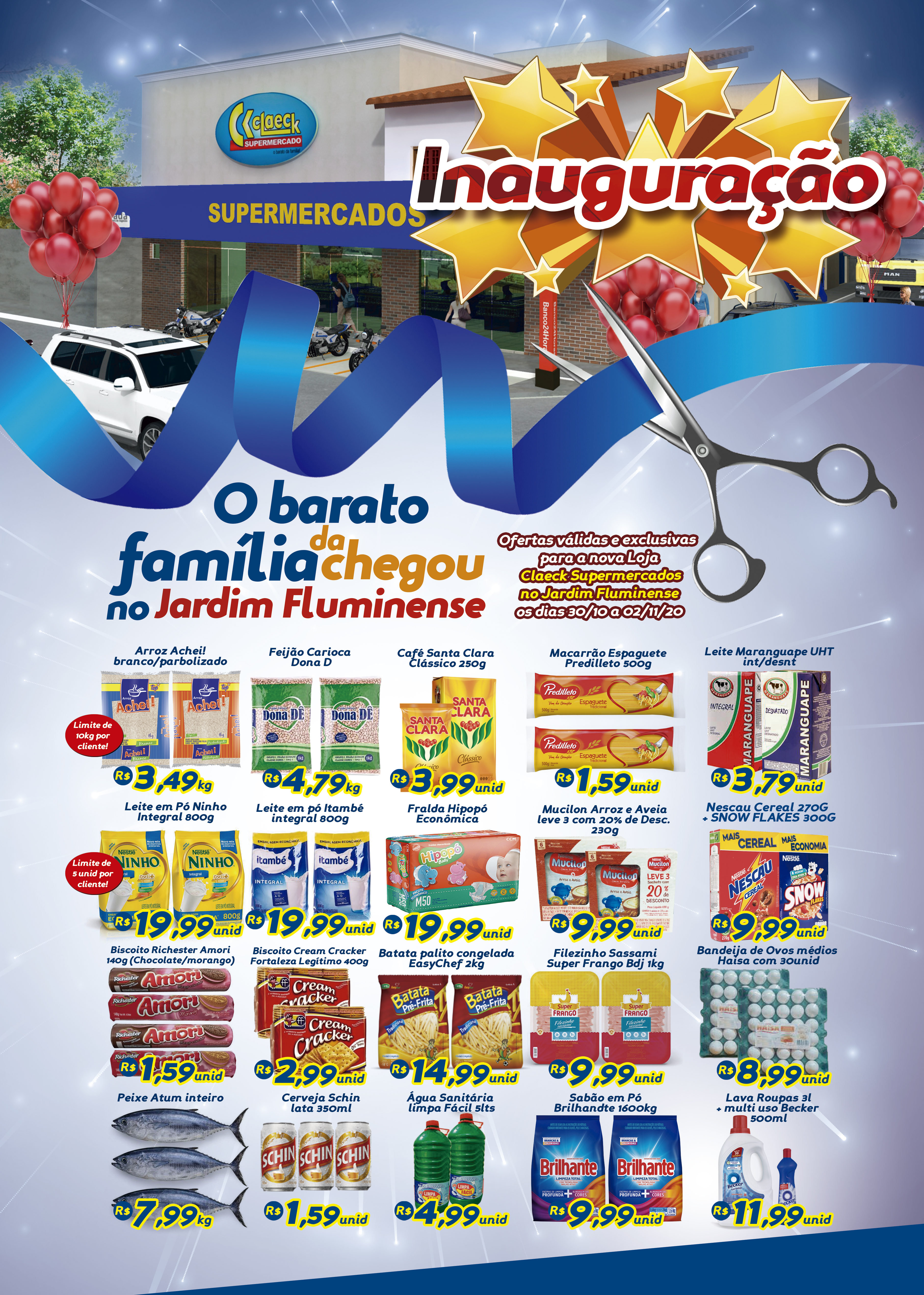 Você não pode ficar de fora das ofertas do Claeck Supermercados de inauguração de sua nova loja no Parque fluminense!