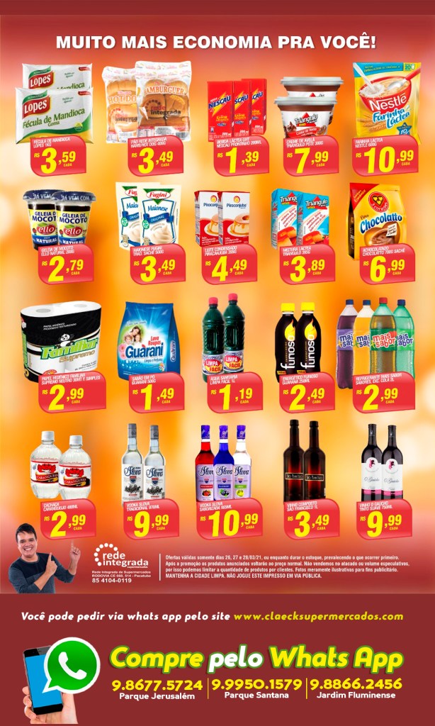 Fim de semana com ofertas! por Claeck SupermercadosPostado em 26 de março de 202125 de março de 2021 Escolha a sua loja preferida e peça pelo Whats App e receba em casa*. Loja Pq Jerusalém Loja Pq Santana Loja Jardim Fluminense Compartilhe isso: Compartilhar no X(abre em nova janela) 18+ Compartilhar no Facebook(abre em nova janela) Facebook Curtir Carregando... Relacionado