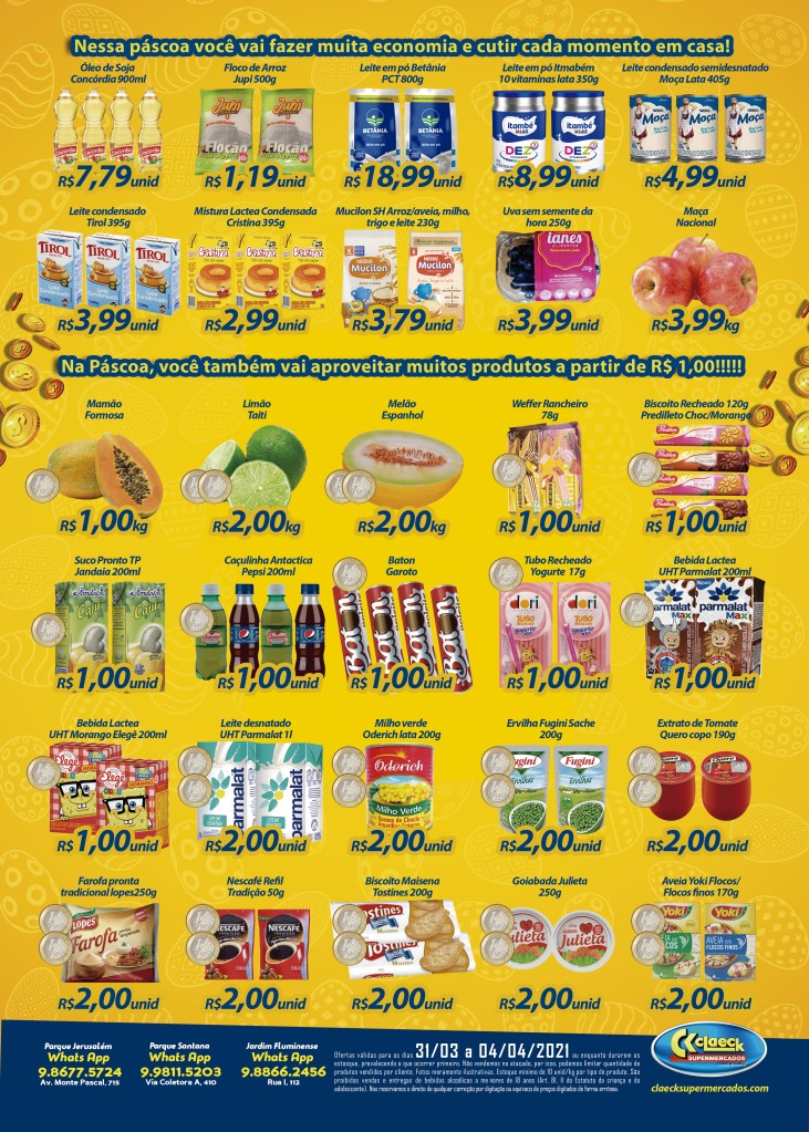 Vem economizar na páscoa com a gente! por Claeck SupermercadosPostado em 30 de março de 202130 de março de 2021 Qual loja você prefere fazer suas compras? Claeck Pq Jerusalém Claeck Pq Santana Claeck Jardim Fluminense Compartilhe isso: Compartilhar no X(abre em nova janela) 18+ Compartilhar no Facebook(abre em nova janela) Facebook Curtir Carregando... Relacionado
