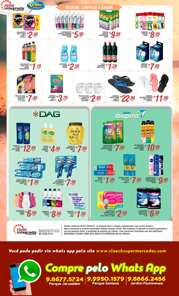 Páscoa com muita economia por Claeck SupermercadosPostado em 2 de abril de 202128 de março de 2021 Escolha a sua loja preferida e peça pelo Whats App e receba em casa*. Loja Pq Jerusalém Loja Pq Santana Loja Jardim Fluminense Compartilhe isso: Compartilhar no X(abre em nova janela) 18+ Compartilhar no Facebook(abre em nova janela) Facebook Curtir Carregando... Relacionado