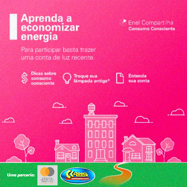 E não esqueça de trazer uma conta de energia recente (entrada para particiar da Oficina) e até 5 lâmpadas fluorescente compacta ou incandescente para trocar por até 5 lâmpadas de LED. Ah! Não esqueça de dizer que é cliente do Claeck Supermercados para você trocar as lâmpadas.