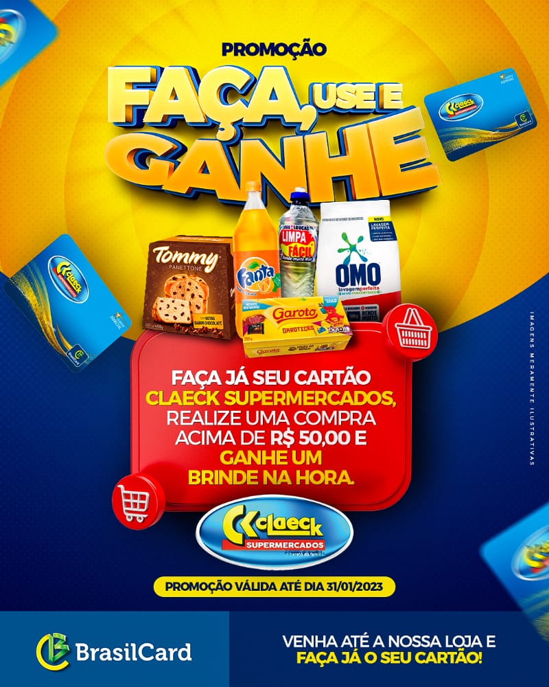 Começa hoje uma AÇÃO da BRASILCARD no Claeck Supermercados que segue até o dia 29/01/2023.