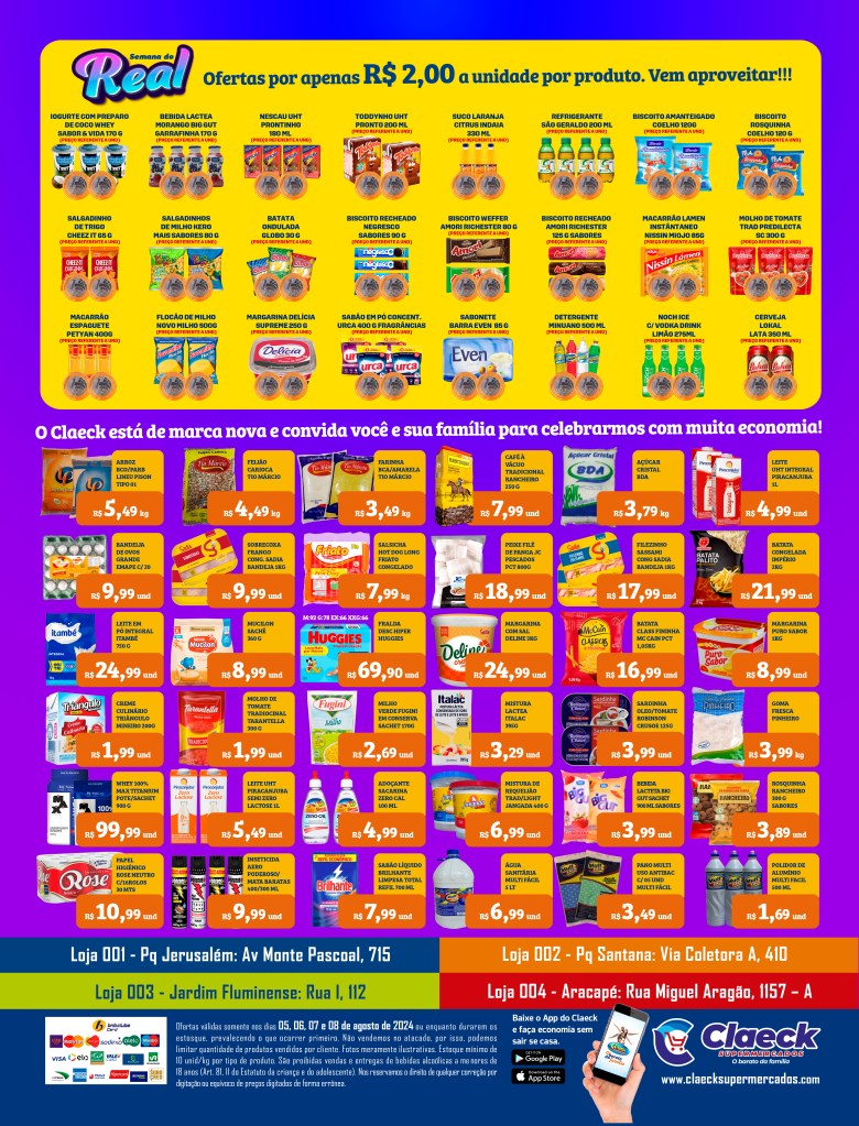 Vem comprar barato! por Claeck SupermercadosPostado em 4 de agosto de 20244 de agosto de 2024 Compre pelo App! Click >>aqui<< Escolha a sua loja preferida e peça pelo Whats App e receba em casa*. Loja Pq Jerusalém Loja Pq Santana Loja Jardim Fluminense Loja Aracapé Compartilhe isso: Compartilhar no X(abre em nova janela) 18+ Compartilhar no Facebook(abre em nova janela) Facebook Curtir Carregando... Relacionado