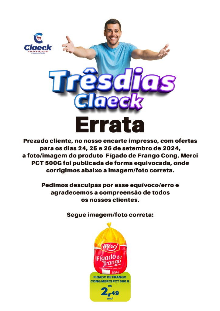 Vem comprar barato! por Claeck SupermercadosPostado em 23 de setembro de 202423 de setembro de 2024 Escolha a sua loja preferida e peça pelo Whats App e receba em casa*. Loja Pq Jerusalém Loja Pq Santana Loja Jardim Fluminense Loja Aracapé Compartilhe isso: Compartilhar no X(abre em nova janela) 18+ Compartilhar no Facebook(abre em nova janela) Facebook Curtir Carregando... Relacionado