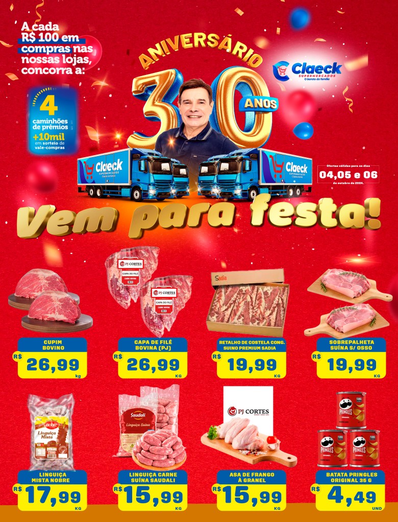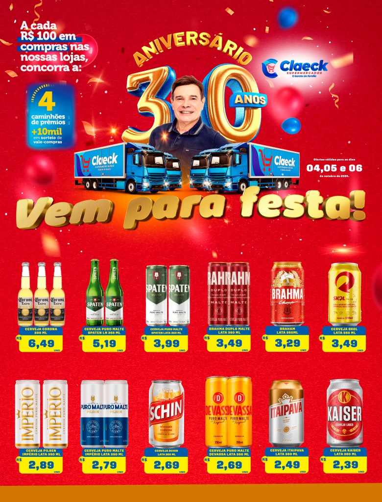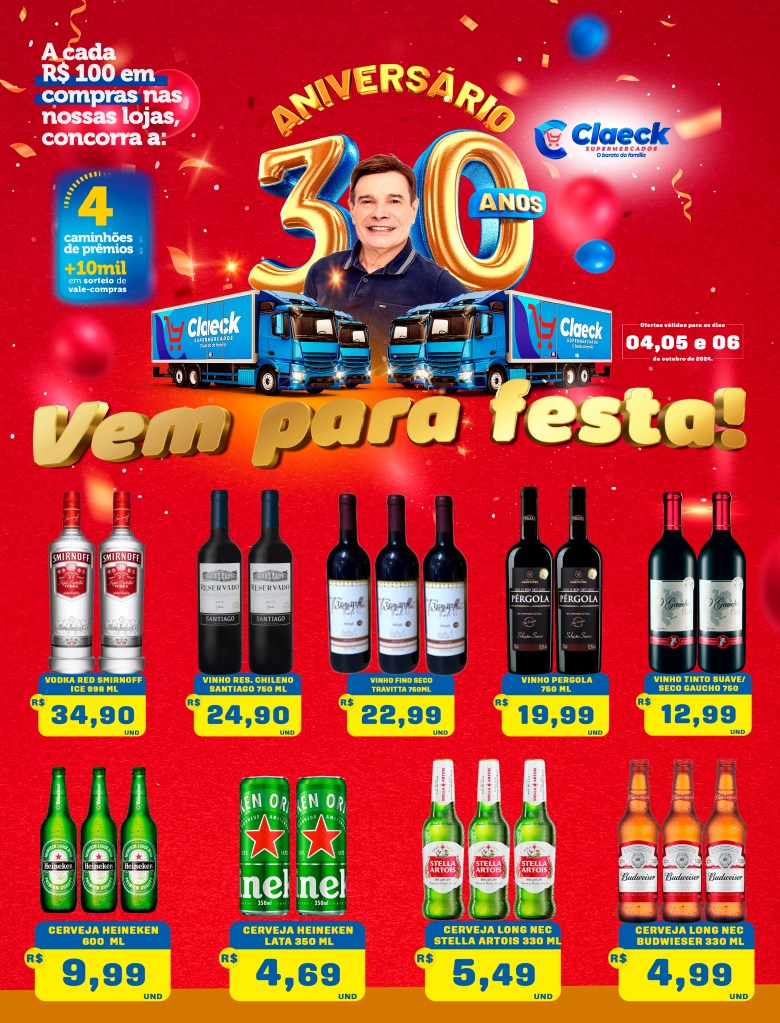 Vem comemorar! por Claeck SupermercadosPostado em 4 de outubro de 2024 Escolha a sua loja preferida e peça pelo Whats App e receba em casa*. Loja Pq Jerusalém Loja Pq Santana Loja Jardim Fluminense Loja Aracapé Compartilhe isso: Compartilhar no X(abre em nova janela) 18+ Compartilhar no Facebook(abre em nova janela) Facebook Curtir Carregando... Relacionado