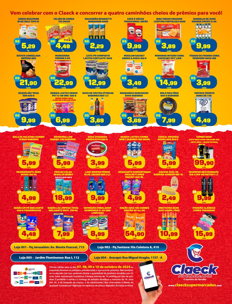 Vem aproveitar! por Claeck SupermercadosPostado em 6 de outubro de 20246 de outubro de 2024 Escolha a sua loja preferida e peça pelo Whats App e receba em casa*. Loja Pq Jerusalém Loja Pq Santana Loja Jardim Fluminense Loja Aracapé Compartilhe isso: Compartilhar no X(abre em nova janela) 18+ Compartilhar no Facebook(abre em nova janela) Facebook Curtir Carregando... Relacionado