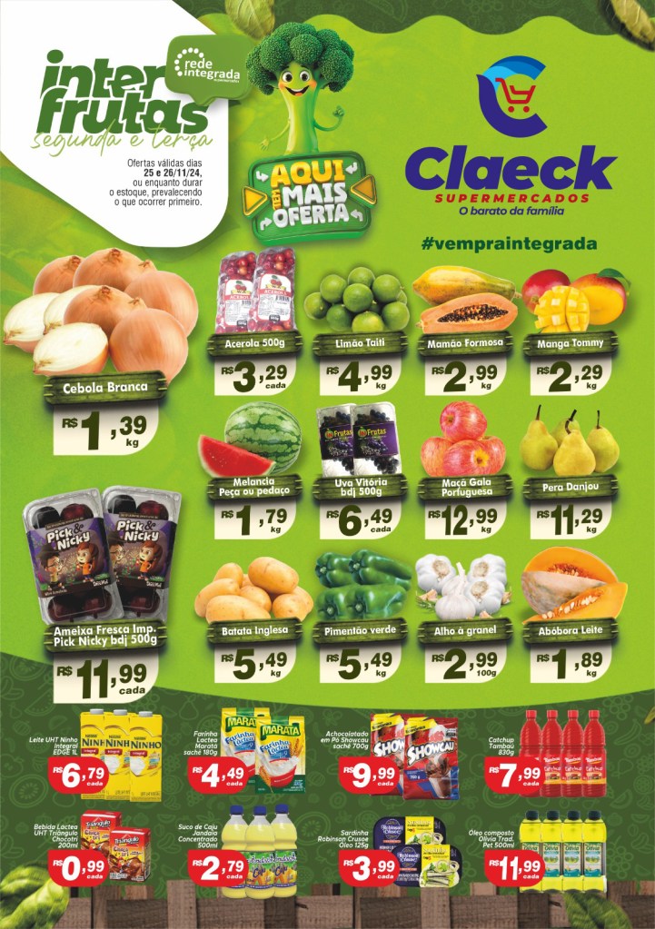 É dia de feira! por Claeck SupermercadosPostado em 24 de novembro de 202423 de novembro de 2024 Escolha a sua loja preferida e peça pelo Whats App e receba em casa*. Loja Pq Jerusalém Loja Pq Santana Loja Jardim Fluminense Loja Aracapé Compartilhe isso: Compartilhar no X(abre em nova janela) 18+ Compartilhar no Facebook(abre em nova janela) Facebook Curtir Carregando... Relacionado