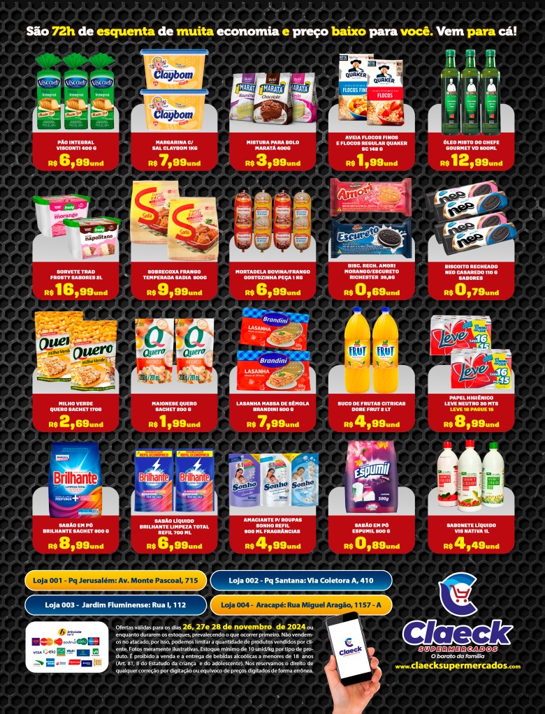 Esquenta! por Claeck SupermercadosPostado em 25 de novembro de 202423 de novembro de 2024 Escolha a sua loja preferida e peça pelo Whats App e receba em casa*. Loja Pq Jerusalém Loja Pq Santana Loja Jardim Fluminense Loja Aracapé Compartilhe isso: Compartilhar no X(abre em nova janela) 18+ Compartilhar no Facebook(abre em nova janela) Facebook Curtir Carregando... Relacionado
