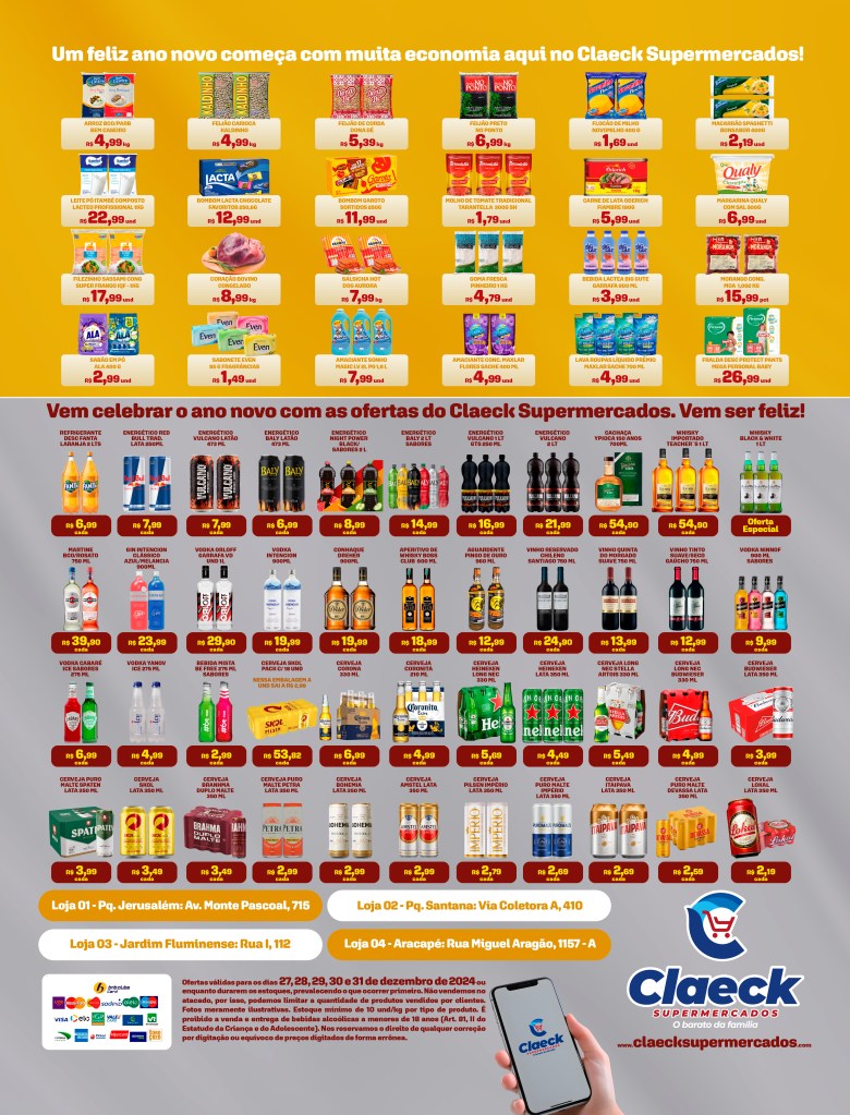 Feliz ano novo! por Claeck SupermercadosPostado em 27 de dezembro de 202427 de dezembro de 2024 Escolha a sua loja preferida e peça pelo Whats App e receba em casa*. Loja Pq Jerusalém Loja Pq Santana Loja Jardim Fluminense Loja Aracapé Compartilhe isso: Compartilhar no X(abre em nova janela) 18+ Compartilhar no Facebook(abre em nova janela) Facebook Curtir Carregando... Relacionado