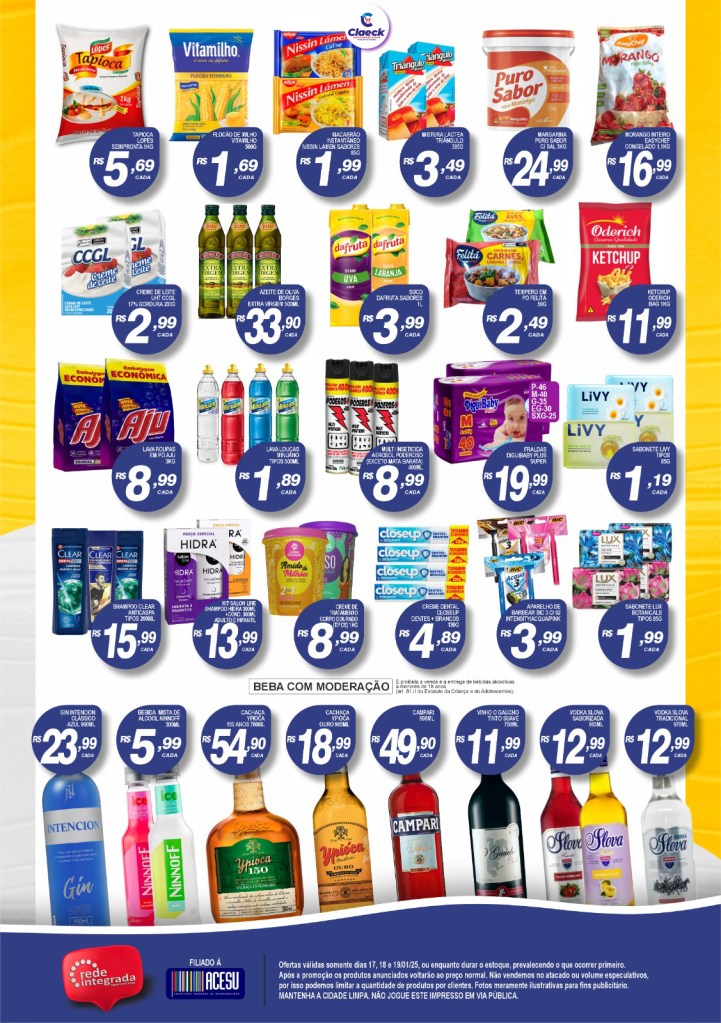 Ofertaço! por Claeck SupermercadosPostado em 16 de janeiro de 202516 de janeiro de 2025 Escolha a sua loja preferida e peça pelo Whats App e receba em casa*. Loja Pq Jerusalém Loja Pq Santana Loja Jardim Fluminense Loja Aracapé Compartilhe isso: Compartilhar no X(abre em nova janela) 18+ Compartilhar no Facebook(abre em nova janela) Facebook Curtir Carregando... Relacionado