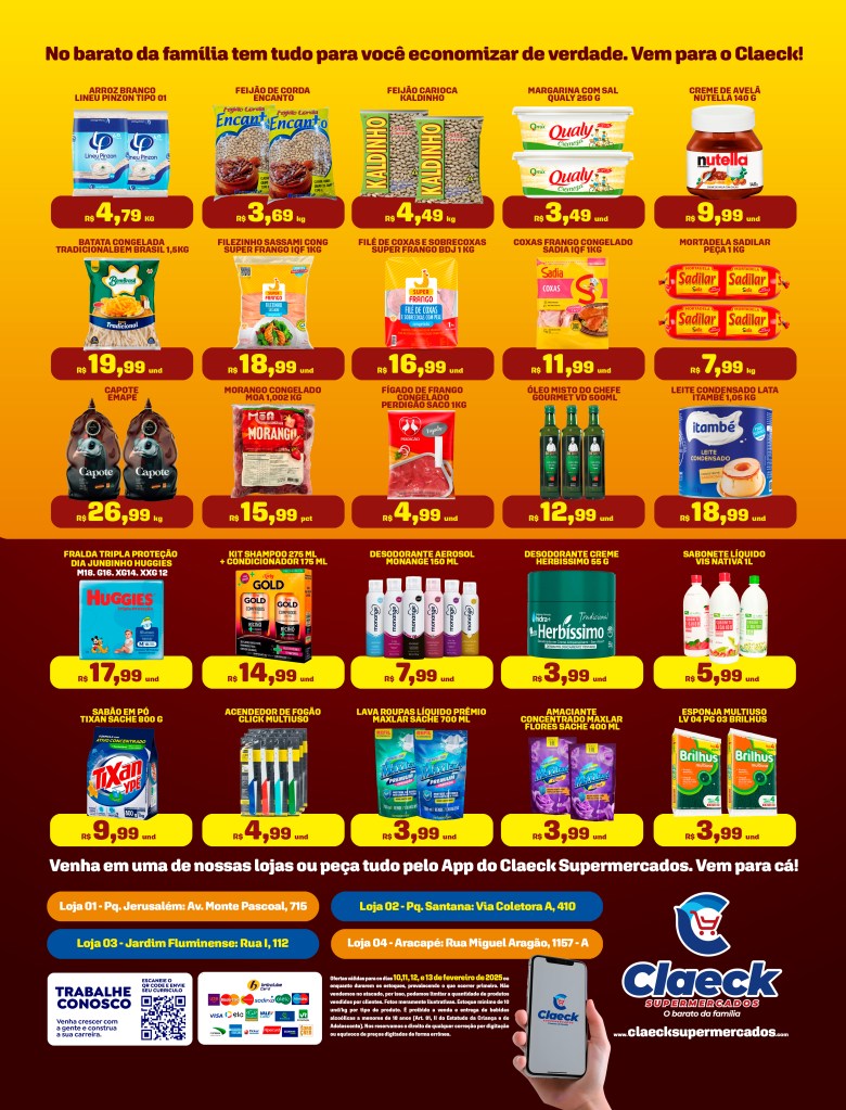 Vem! por Claeck SupermercadosPostado em 9 de fevereiro de 20258 de fevereiro de 2025 Escolha a sua loja preferida e peça pelo Whats App e receba em casa*. Loja Pq Jerusalém Loja Pq Santana Loja Jardim Fluminense Loja Aracapé Compartilhe isso: Compartilhar no X(abre em nova janela) 18+ Compartilhar no Facebook(abre em nova janela) Facebook Curtir Carregando... Relacionado