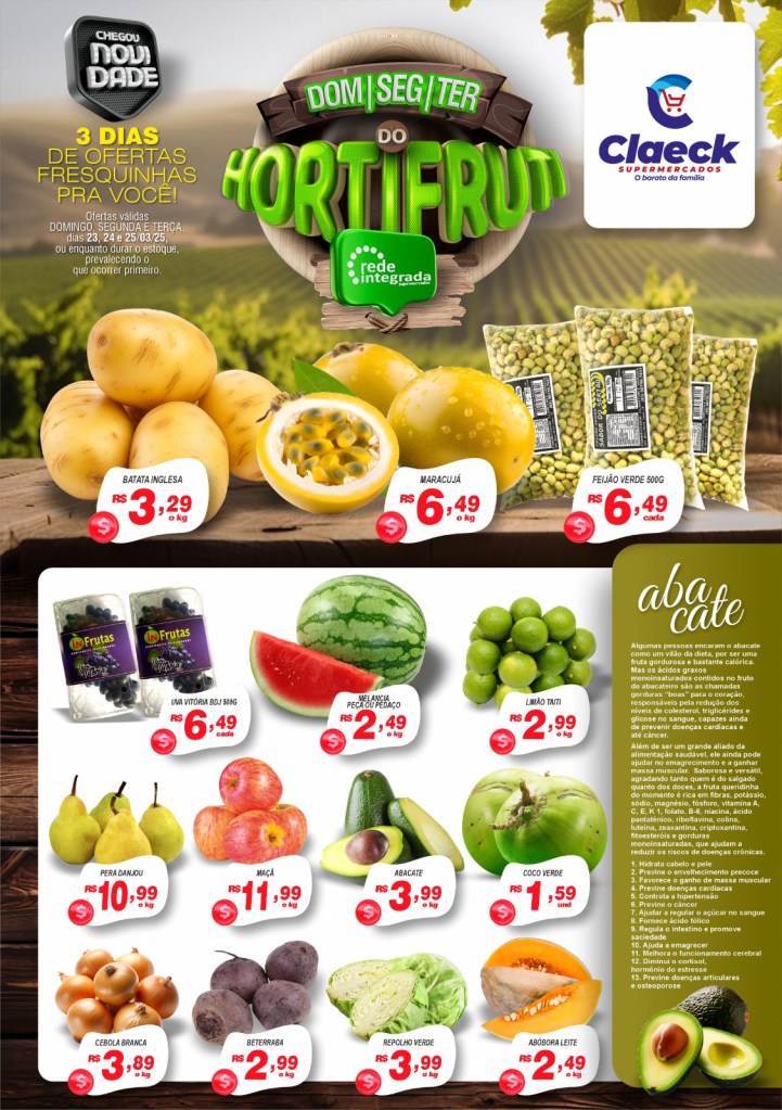 Dia de feira! por Claeck SupermercadosPostado em 22 de março de 202522 de março de 2025 Escolha a sua loja preferida e peça pelo Whats App e receba em casa*. Loja Pq Jerusalém Loja Pq Santana Loja Jardim Fluminense Loja Aracapé Compartilhe isso: Compartilhar no X(abre em nova janela) 18+ Compartilhar no Facebook(abre em nova janela) Facebook Curtir Carregando... Relacionado