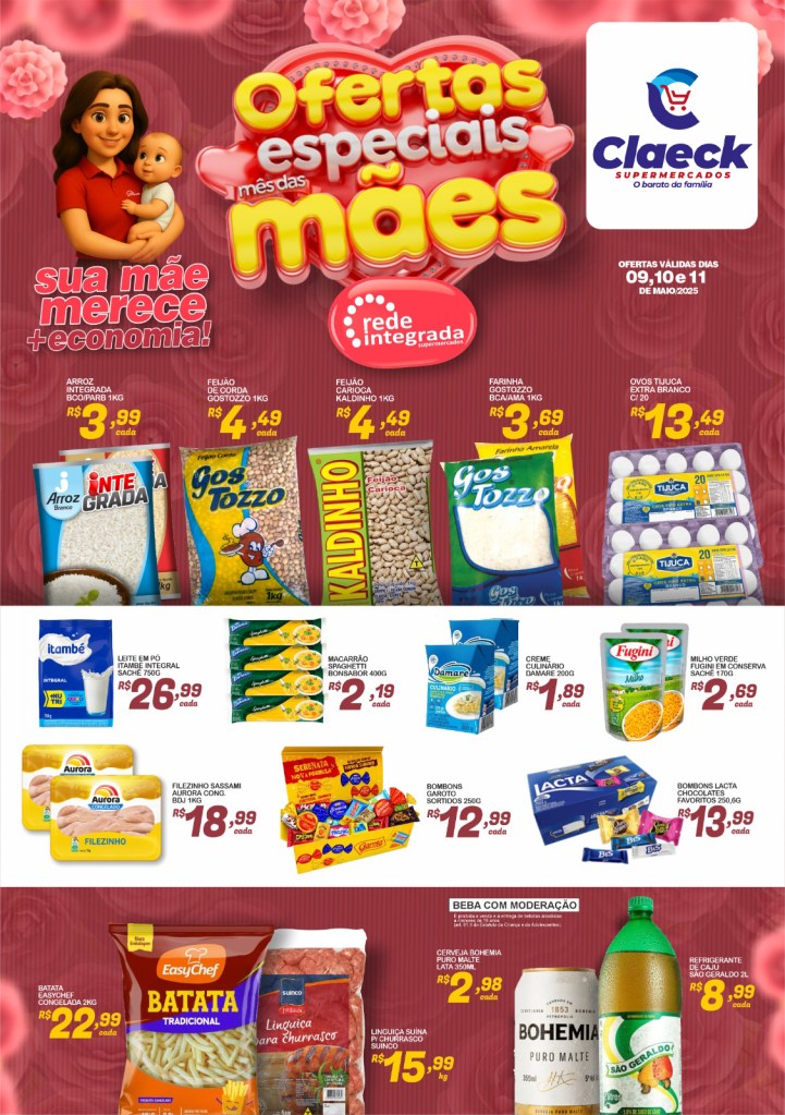 Vem curtir o dia das mães! por Claeck SupermercadosPostado em 9 de maio de 2025 Escolha a sua loja preferida e peça pelo Whats App e receba em casa*. Loja Pq Jerusalém Loja Pq Santana Loja Jardim Fluminense Loja Aracapé Compartilhe isso: Compartilhar no X(abre em nova janela) 18+ Compartilhar no Facebook(abre em nova janela) Facebook Curtir Carregando... Relacionado