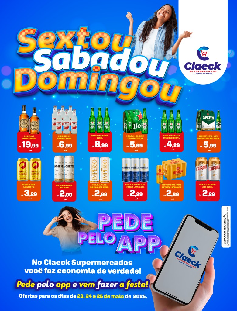 Sextou, sabadou e domingou! por Claeck SupermercadosPostado em 23 de maio de 2025 Escolha a sua loja preferida e peça pelo Whats App e receba em casa*. Loja Pq Jerusalém Loja Pq Santana Loja Jardim Fluminense Loja Aracapé Compartilhe isso: Compartilhar no X(abre em nova janela) 18+ Compartilhar no Facebook(abre em nova janela) Facebook Curtir Carregando... Relacionado