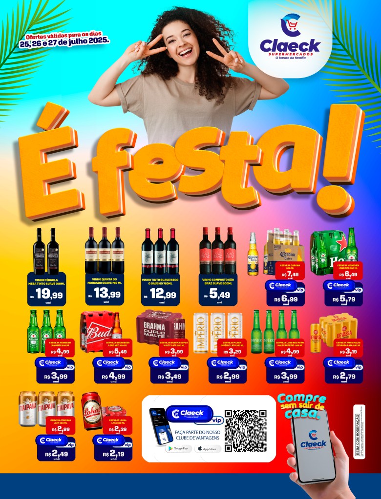 É festa de economia! por Claeck SupermercadosPostado em 25 de julho de 2025 Escolha a sua loja preferida e peça pelo Whats App e receba em casa*. Loja Pq Jerusalém Loja Pq Santana Loja Jardim Fluminense Loja Aracapé Compartilhe isso: Compartilhar no X(abre em nova janela) 18+ Compartilhar no Facebook(abre em nova janela) Facebook Curtir Carregando... Relacionado