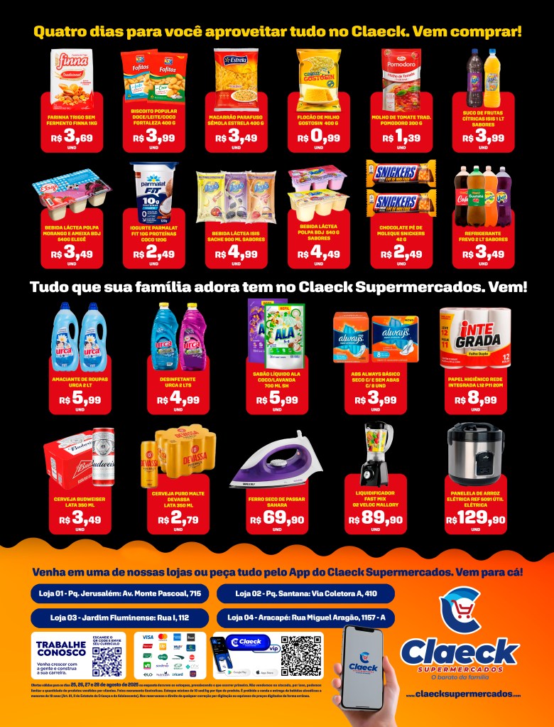 Vem comprar barato! por Claeck SupermercadosPostado em 24 de agosto de 202523 de agosto de 2025 Escolha a sua loja preferida e peça pelo Whats App e receba em casa*. Loja Pq Jerusalém Loja Pq Santana Loja Jardim Fluminense Loja Aracapé Compartilhe isso: Compartilhar no X(abre em nova janela) 18+ Compartilhar no Facebook(abre em nova janela) Facebook Curtir Carregando... Relacionado