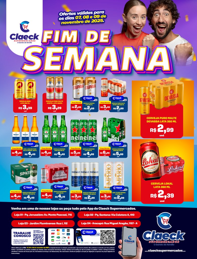 É festa em casa! por Claeck SupermercadosPostado em 6 de novembro de 2025 Escolha a sua loja preferida e peça pelo Whats App e receba em casa*. Loja Pq Jerusalém Loja Pq Santana Loja Jardim Fluminense Loja Aracapé Compartilhe isso: Compartilhar no X(abre em nova janela) 18+ Compartilhar no Facebook(abre em nova janela) Facebook Curtir Carregando... Relacionado