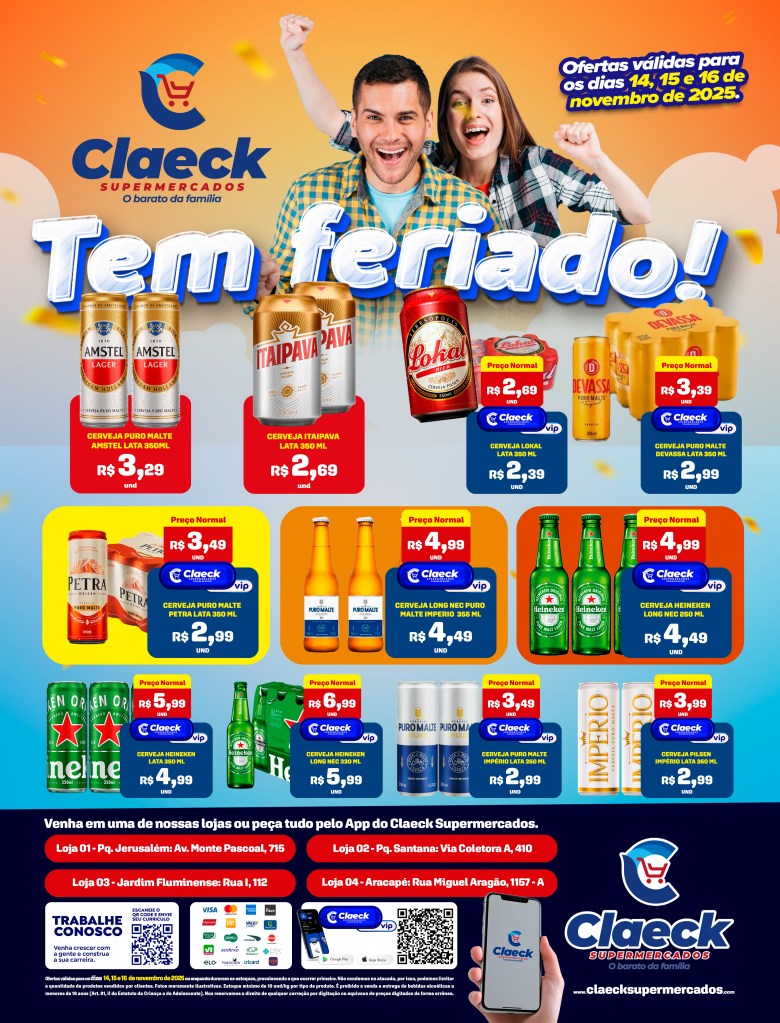 Tem feriado! por Claeck SupermercadosPostado em 14 de novembro de 2025 Escolha a sua loja preferida e peça pelo Whats App e receba em casa*. Loja Pq Jerusalém Loja Pq Santana Loja Jardim Fluminense Loja Aracapé Compartilhe isso: Compartilhar no X(abre em nova janela) 18+ Compartilhar no Facebook(abre em nova janela) Facebook Curtir Carregando... Relacionado