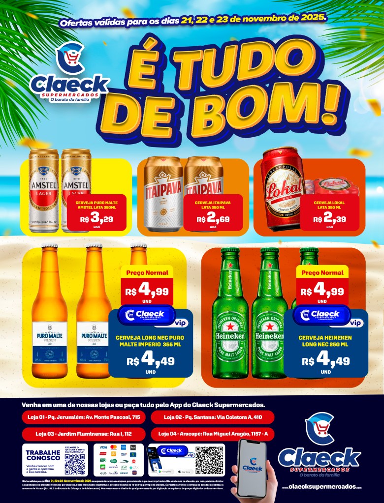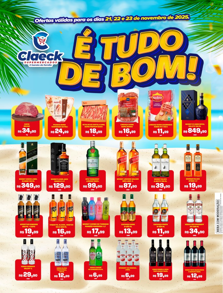 Vem fazer a festa! por Claeck SupermercadosPostado em 21 de novembro de 2025 Escolha a sua loja preferida e peça pelo Whats App e receba em casa*. Loja Pq Jerusalém Loja Pq Santana Loja Jardim Fluminense Loja Aracapé Compartilhe isso: Compartilhar no X(abre em nova janela) 18+ Compartilhar no Facebook(abre em nova janela) Facebook Curtir Carregando... Relacionado