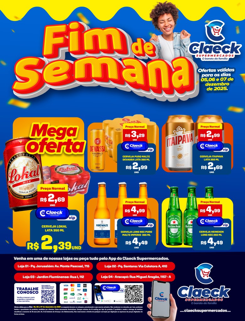 Para o fim de semana! por Claeck SupermercadosPostado em 4 de dezembro de 20254 de dezembro de 2025 Escolha a sua loja preferida e peça pelo Whats App e receba em casa*. Loja Pq Jerusalém Loja Pq Santana Loja Jardim Fluminense Loja Aracapé Compartilhe isso: Compartilhar no X(abre em nova janela) 18+ Compartilhar no Facebook(abre em nova janela) Facebook Curtir Carregando... Relacionado