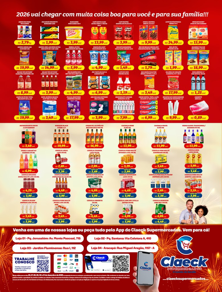 Fim de ano no Claeck! por Claeck SupermercadosPostado em 25 de dezembro de 202525 de dezembro de 2025 Escolha a sua loja preferida e peça pelo Whats App e receba em casa*. Loja Pq Jerusalém Loja Pq Santana Loja Jardim Fluminense Loja Aracapé Compartilhe isso: Compartilhar no X(abre em nova janela) 18+ Compartilhar no Facebook(abre em nova janela) Facebook Curtir Carregando... Relacionado
