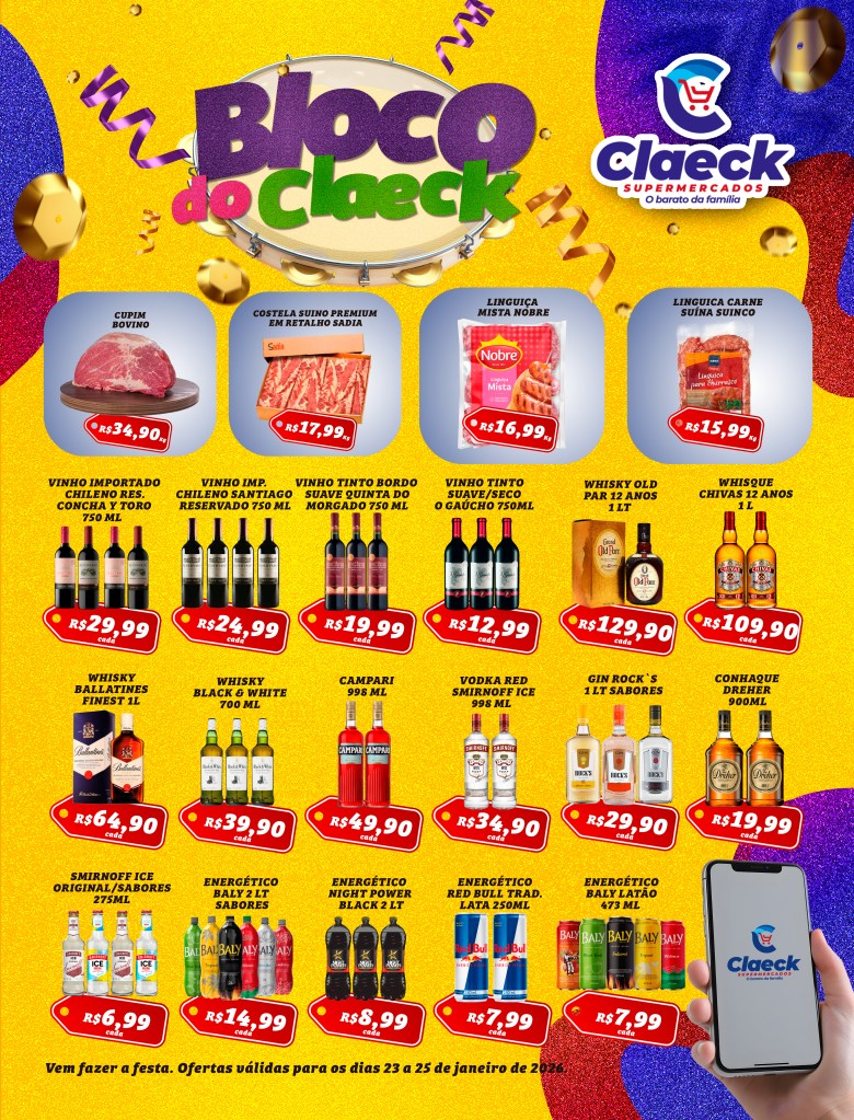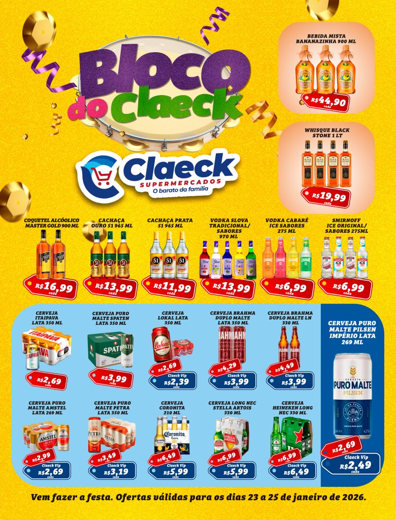 Vem para o Pré Carnaval do Claeck! por Claeck SupermercadosPostado em 23 de janeiro de 2026 Escolha a sua loja preferida e peça pelo Whats App e receba em casa*. Loja Pq Jerusalém Loja Pq Santana Loja Jardim Fluminense Loja Aracapé Compartilhe isso: Compartilhar no X(abre em nova janela) 18+ Compartilhar no Facebook(abre em nova janela) Facebook Curtir Carregando... Relacionado