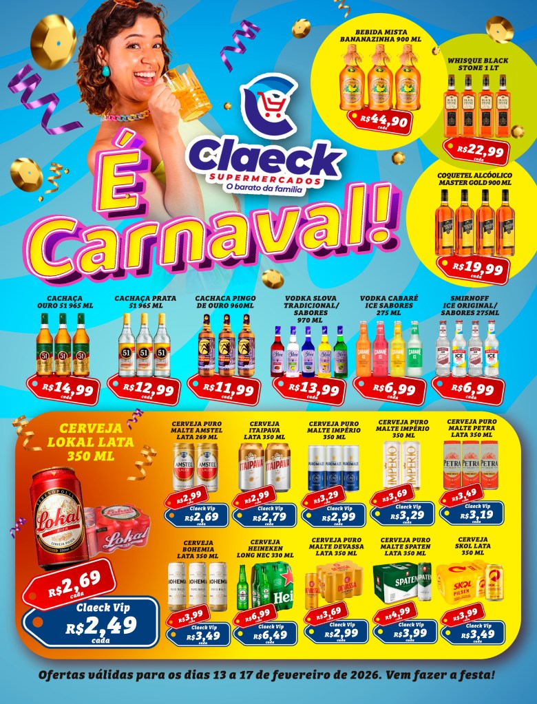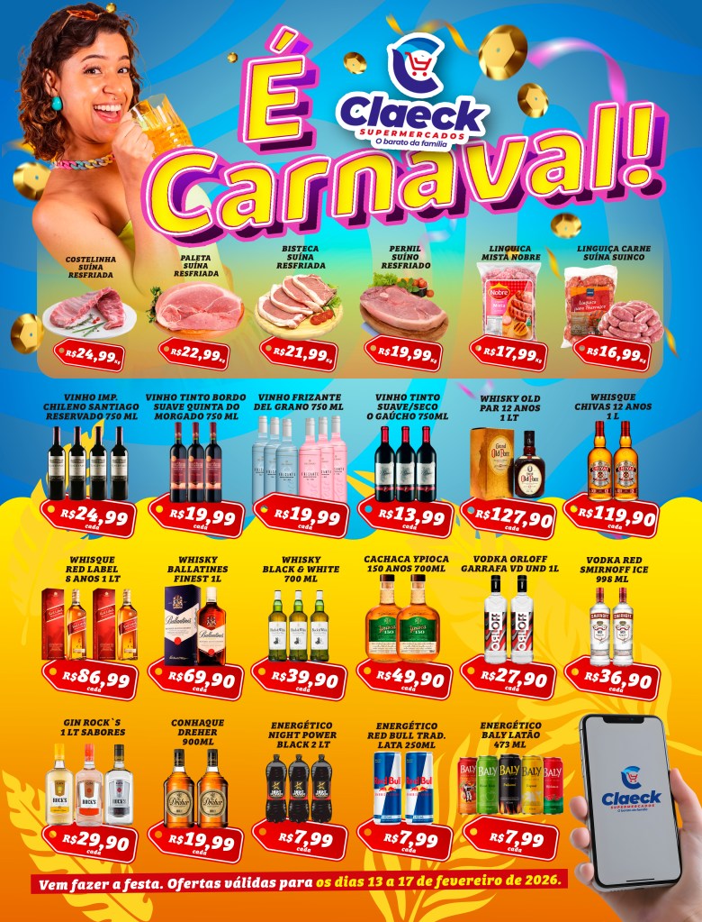Carnaval todo de ofertas! por Claeck SupermercadosPostado em 12 de fevereiro de 2026 Escolha a sua loja preferida e peça pelo Whats App e receba em casa*. Loja Pq Jerusalém Loja Pq Santana Loja Jardim Fluminense Loja Aracapé Compartilhe isso: Compartilhar no X(abre em nova janela) 18+ Compartilhar no Facebook(abre em nova janela) Facebook Curtir Carregando... Relacionado