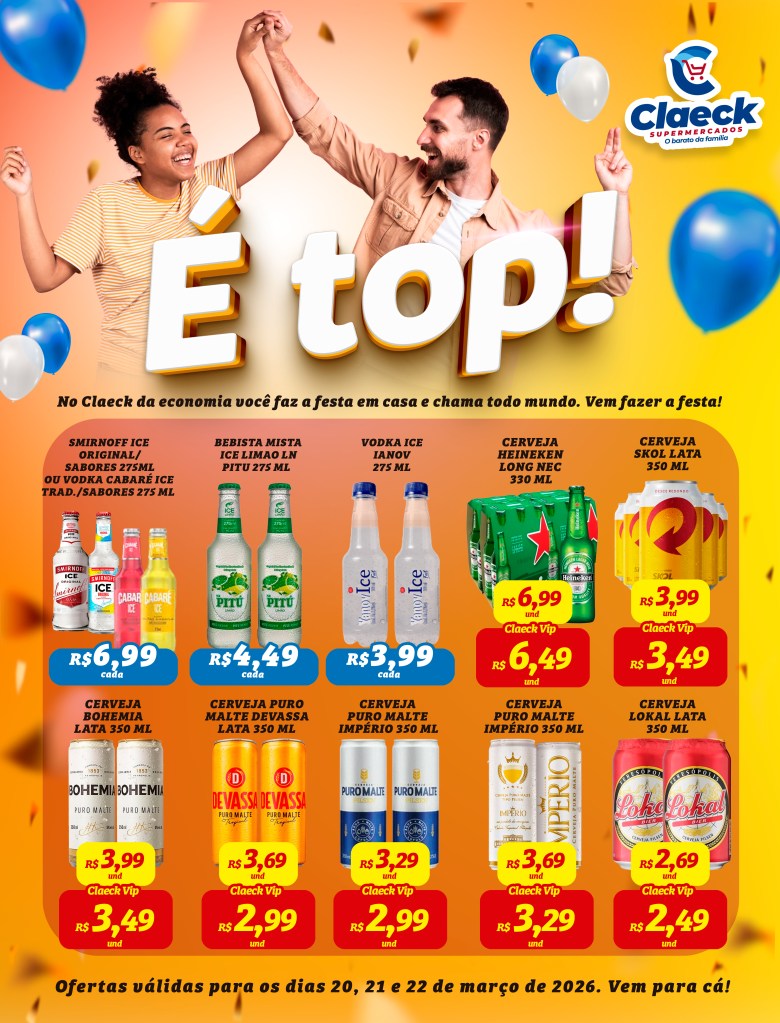 Vem fazer a festa! por Claeck SupermercadosPostado em 20 de março de 2026 Escolha a sua loja preferida e peça pelo Whats App e receba em casa*. Loja Pq Jerusalém Loja Pq Santana Loja Jardim Fluminense Loja Aracapé Compartilhe isso: Compartilhar no X(abre em nova janela) 18+ Compartilhar no Facebook(abre em nova janela) Facebook Curtir Carregando... Relacionado