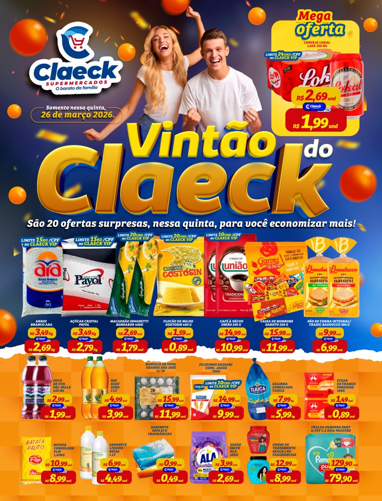 Vintão do Claeck! por Claeck SupermercadosPostado em 25 de março de 202625 de março de 2026 Escolha a sua loja preferida e peça pelo Whats App e receba em casa*. Loja Pq Jerusalém Loja Pq Santana Loja Jardim Fluminense Loja Aracapé Compartilhe isso: Compartilhar no X(abre em nova janela) 18+ Compartilhar no Facebook(abre em nova janela) Facebook Curtir Carregando... Relacionado