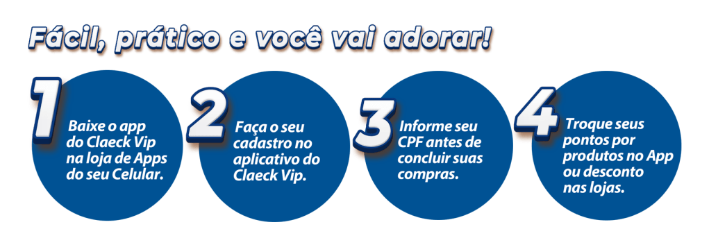 É só baixar o App do Claeck Vip, fazer o seu cadastro no aplicativo e informar o seu CPF antes da conclusão das compras no Claeck.
